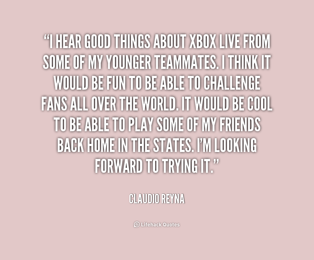 I hear good things about Xbox Live from some of my younger teammates. I think it would be fun to be able to challenge fans all over the world. It would be cool to be able to play some of my friends back home in the States. I'm looking forward to trying it.