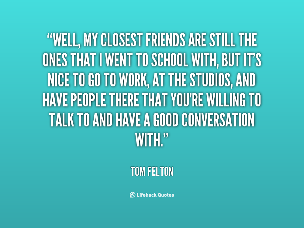 Well, my closest friends are still the ones that I went to school with, but it's nice to go to work, at the studios, and have people there that you're willing to talk to and have a good conversation with.