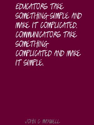 Educators take something simple and make it complicated. Communicators take something complicated and make it simple.