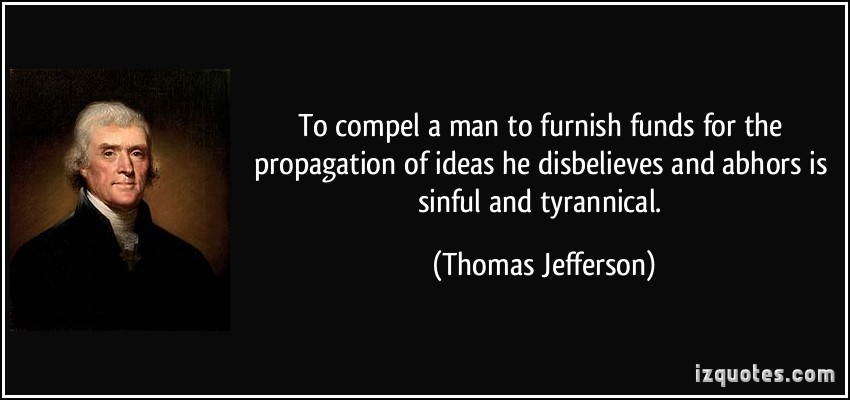 To compel a man to furnish funds for the propagation of ideas he disbelieves and abhors is sinful and tyrannical.