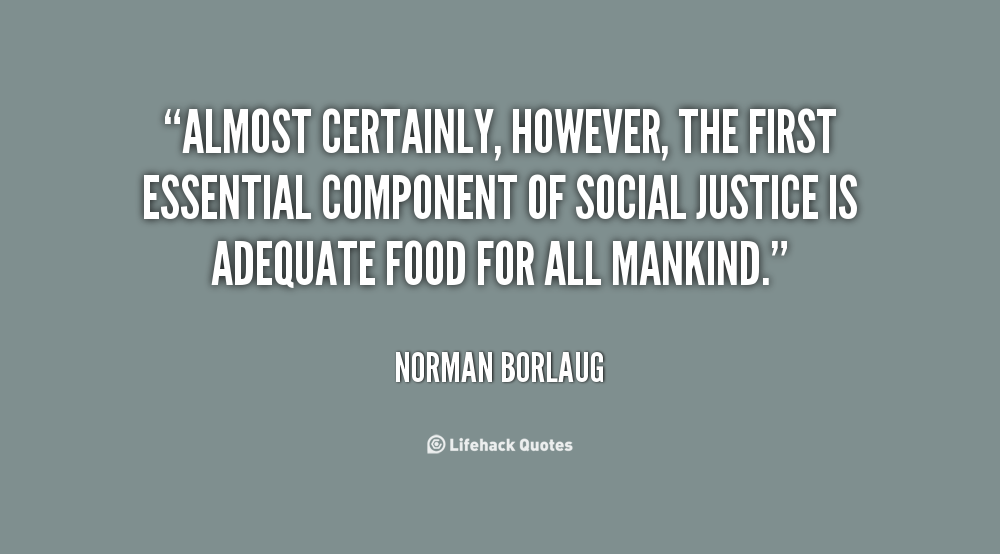 Almost certainly, however, the first essential component of social justice is adequate food for all mankind.