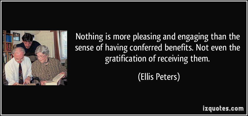 Nothing is more pleasing and engaging than the sense of having conferred benefits. Not even the gratification of receiving them.