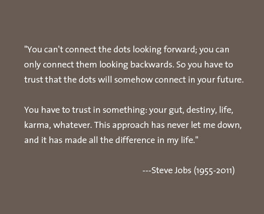 Creativity is just connecting things. When you ask creative people how they did something, they feel a little guilty because they didn't really do it, they just saw something. It seemed obvious to them after a while. That's because they were able to connect experiences they've had and synthesize new things.
