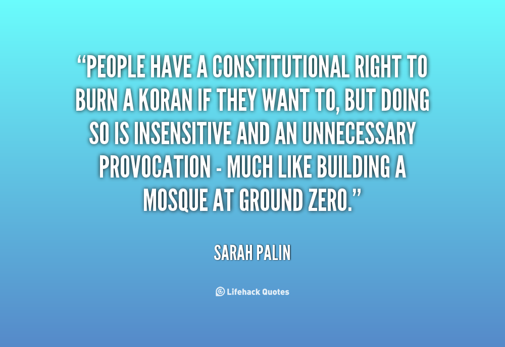 People have a constitutional right to burn a Koran if they want to, but doing so is insensitive and an unnecessary provocation - much like building a mosque at Ground Zero.