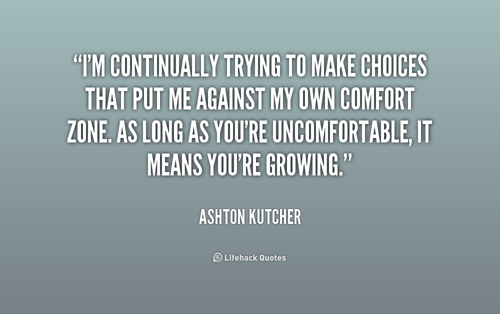 I'm continually trying to make choices that put me against my own comfort zone. As long as you're uncomfortable, it means you're growing.