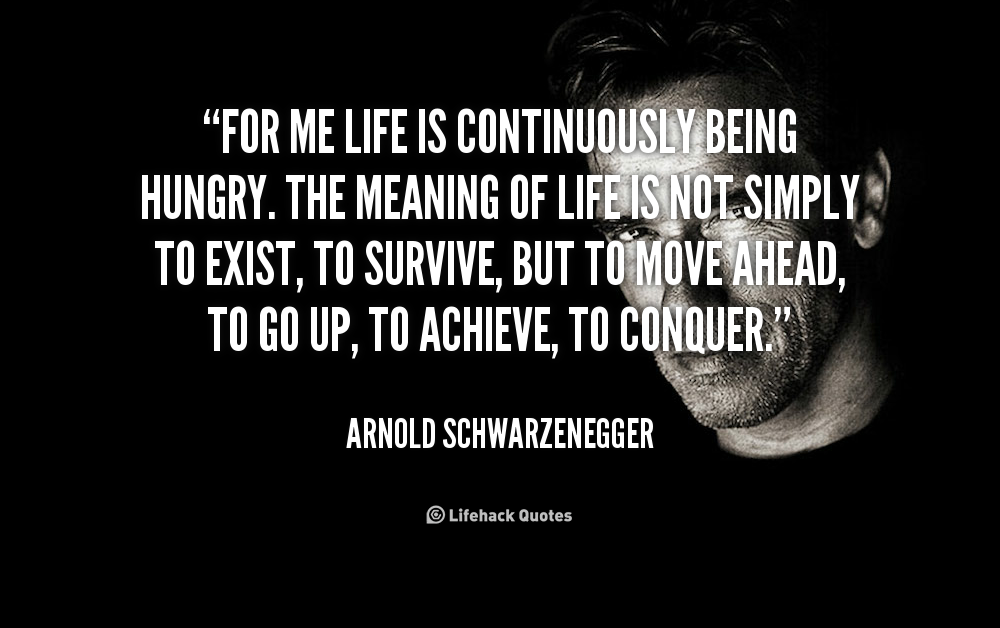 For me life is continuously being hungry. The meaning of life is not simply to exist, to survive, but to move ahead, to go up, to achieve, to conquer.
