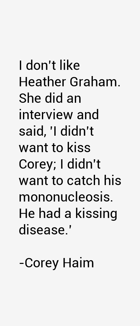 Corey Ian Haim was a Canadian actor, known for a 1980s Hollywood career as a teen idol. He starred in a number of films, such as Lucas, Silver Bullet, Murphy's Romance, License to Drive, Dream a Little Dream, and Snowboard Academy. His best-known role was alongside Corey Feldman in The Lost Boys, which made Haim a household name... (wikipedia)