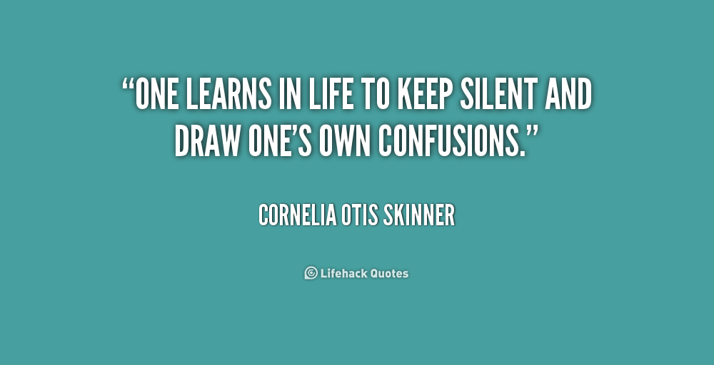 One learns in life to keep silent and draw one's own confusions.