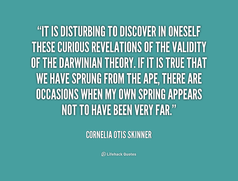 It is disturbing to discover in oneself these curious revelations of the validity of the Darwinian theory. If it is true that we have sprung from the ape, there are occasions when my own spring appears not to have been very far.