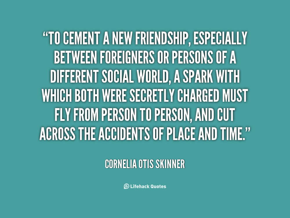To cement a new friendship, especially between foreigners or persons of a different social world, a spark with which both were secretly charged must fly from person to person, and cut across the accidents of place and time.