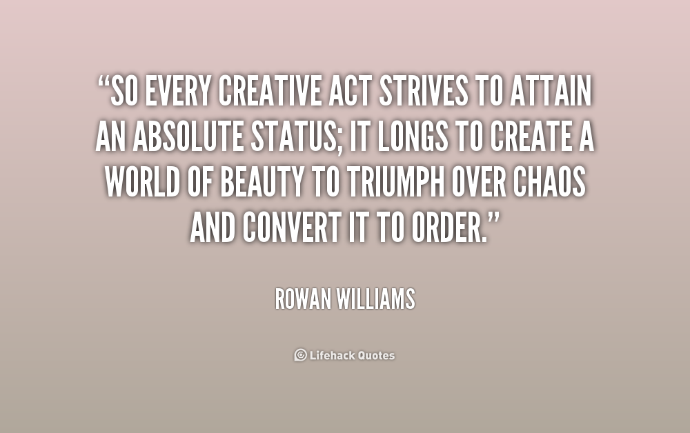Faith is almost the bottom line of creativity; it requires a leap of faith any time we undertake a creative endeavor, whether this is going to the easel, or the page, or onto the stage - or for that matter, in a homelier way, picking out the right fabric for the kitchen curtains, which is also a creative act.
