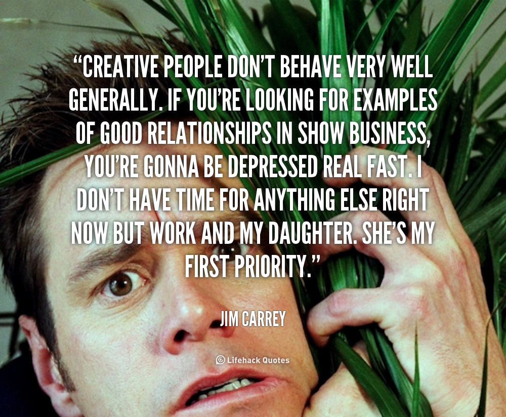 Creative people don't behave very well generally. If you're looking for examples of good relationships in show business, you're gonna be depressed real fast. I don't have time for anything else right now but work and my daughter. She's my first priority.
