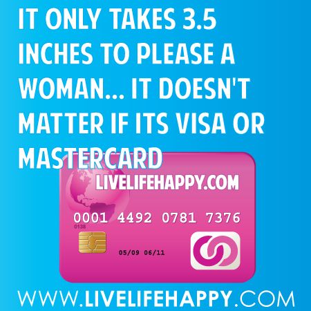 They're pushing credit cards. They don't take Visa, but they do take American Express, or they don't take this one, but they take that one, or you'd better bring this one, or if you forget who you are, look on your credit card; it will be there.