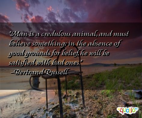 Man is a credulous animal, and must believe something; in the absence of good grounds for belief, he will be satisfied with bad ones.