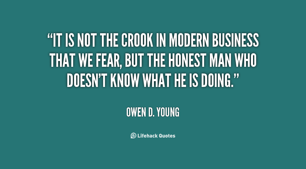 In modern business it is not the crook who is to be feared most, it is the honest man who doesn't know what he is doing.