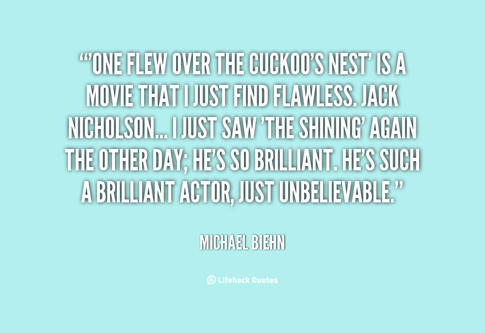 'One Flew Over the Cuckoo's Nest' is a movie that I just find flawless. Jack Nicholson... I just saw 'The Shining' again the other day; he's so brilliant. He's such a brilliant actor, just unbelievable.