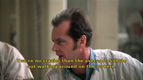 In terms of popular cinema, 'One Flew Over the Cuckoo's Nest' is as near perfection as I can think of.