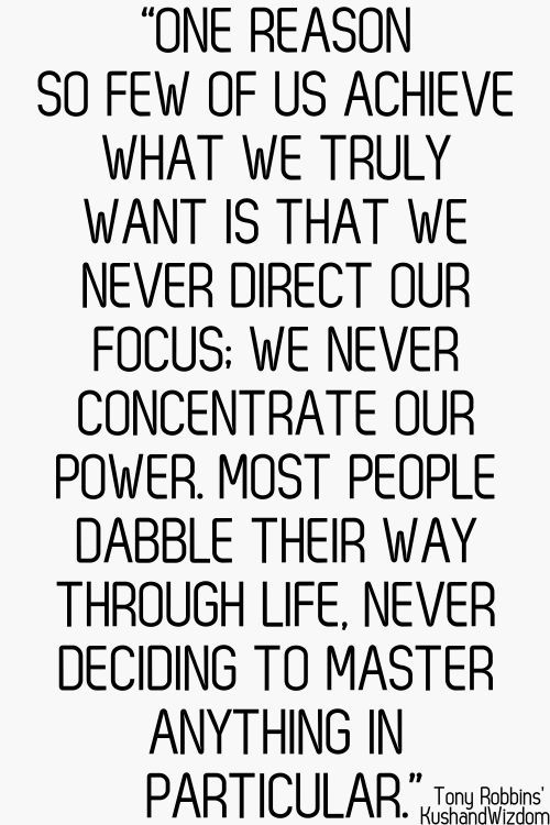 One reason so few of us achieve what we truly want is that we never direct our focus; we never concentrate our power. Most people dabble their way through life, never deciding to master anything in particular.