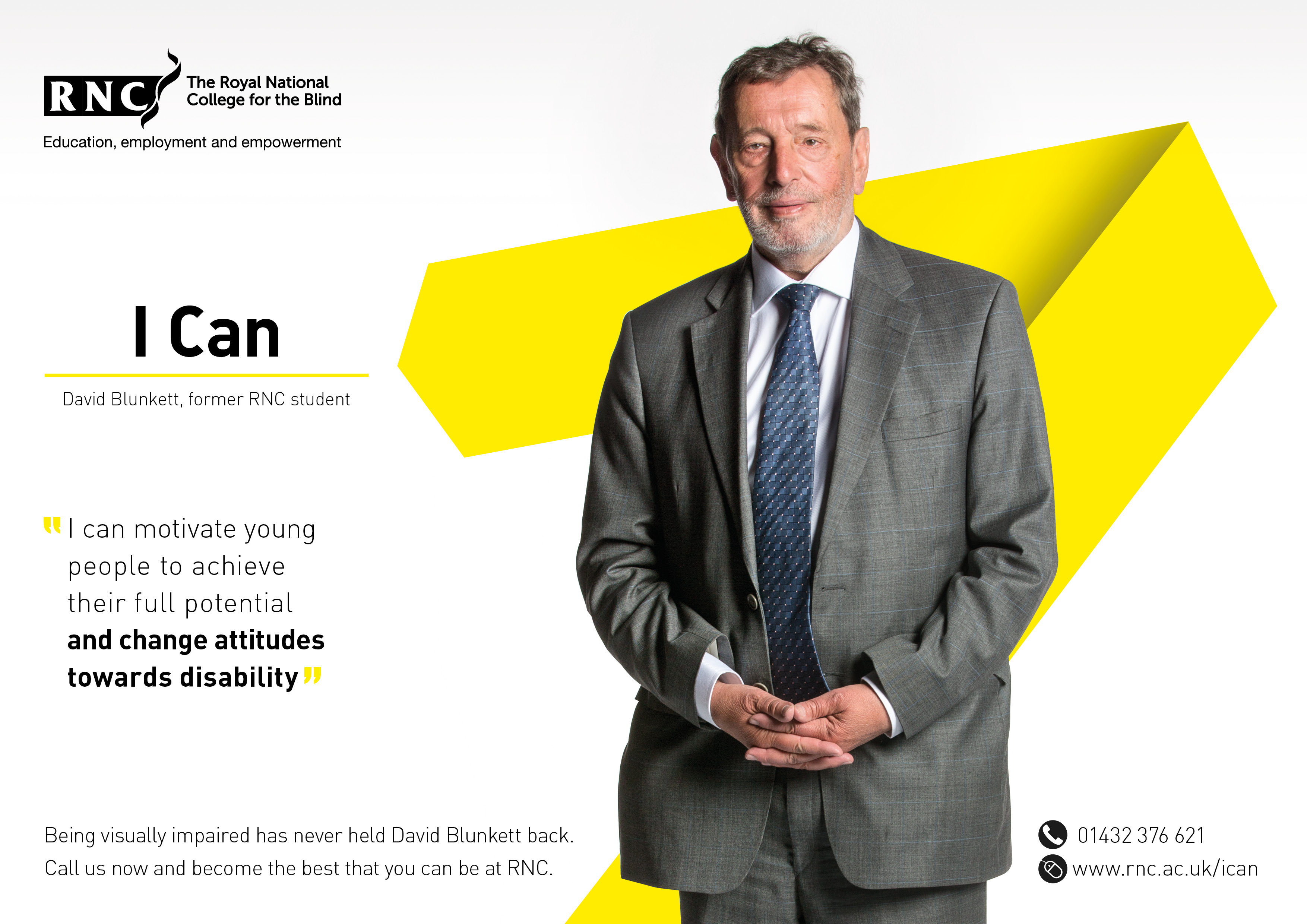 David Blunkett, Baron Blunkett, PC is best known as a British politician and more recently as an academic, having represented the Sheffield Brightside and Hillsborough constituency for 28 years through to 7 May 2015 when he stepped down at the general election.Blind since birth, and coming from a poor family in one of Sheffield's most deprived districts, he rose to become Education and Employment Secretary, Home Secretary and Work and Pensions Secretary in Tony Blair's Cabinet following Labour's victory in the 1997 general election... (wikipedia)