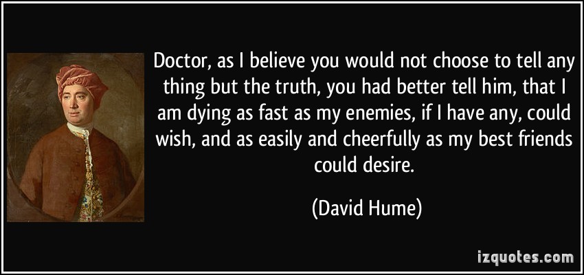 David Hume was a Scottish philosopher, historian, economist, and essayist, who is best known today for his highly influential system of radical philosophical empiricism, skepticism, and naturalism... (wikipedia)