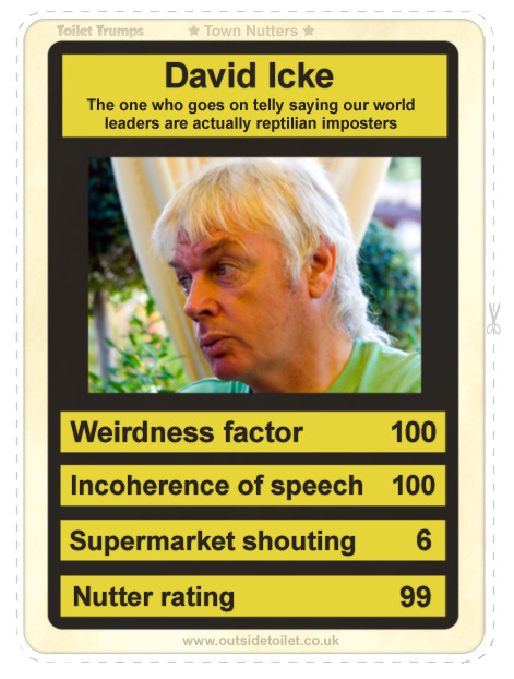 David Vaughan Icke is an English writer, public speaker and a former professional footballer and sports broadcaster. He promotes conspiracy theories about global politics and has written extensively about them... (wikipedia)
