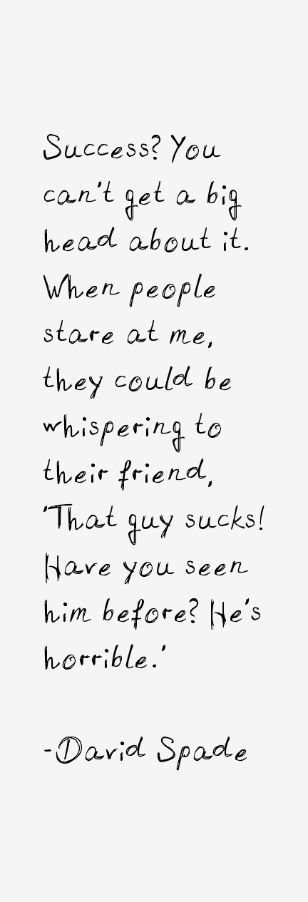 David Wayne Spade is an American stand-up comedian, actor, writer, musician, dancer, and television personality. He rose to fame in the 1990s as a cast member on Saturday Night Live, then began a successful acting career in both film and television. He also starred and co-starred in the films, Tommy Boy, Black Sheep, Joe Dirt, Joe Dirt 2, Grown Ups and Grown Ups 2, among others... (wikipedia)