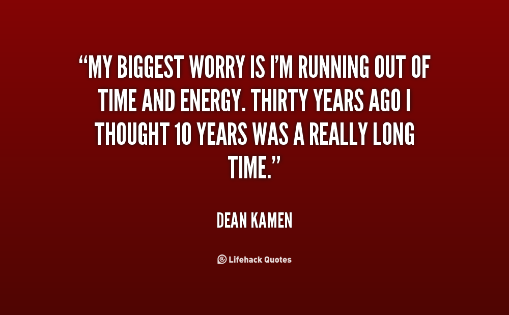 My biggest worry is I'm running out of time and energy. Thirty years ago I thought 10 years was a really long time.