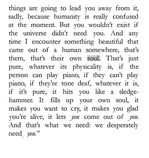 Still and all, why bother? Here's my answer. Many people need desperately to receive this message: I feel and think much as you do, care about many of the things you care about, although most people do not care about them. You are not alone.
