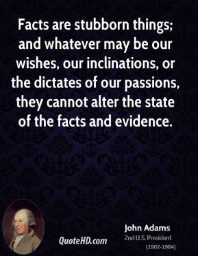 Facts are stubborn things; and whatever may be our wishes, our inclinations, or the dictates of our passions, they cannot alter the state of facts and evidence.