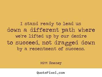 I stand ready to lead us down a different path where we're lifted up by our desire to succeed, not dragged down by a resentment of success.