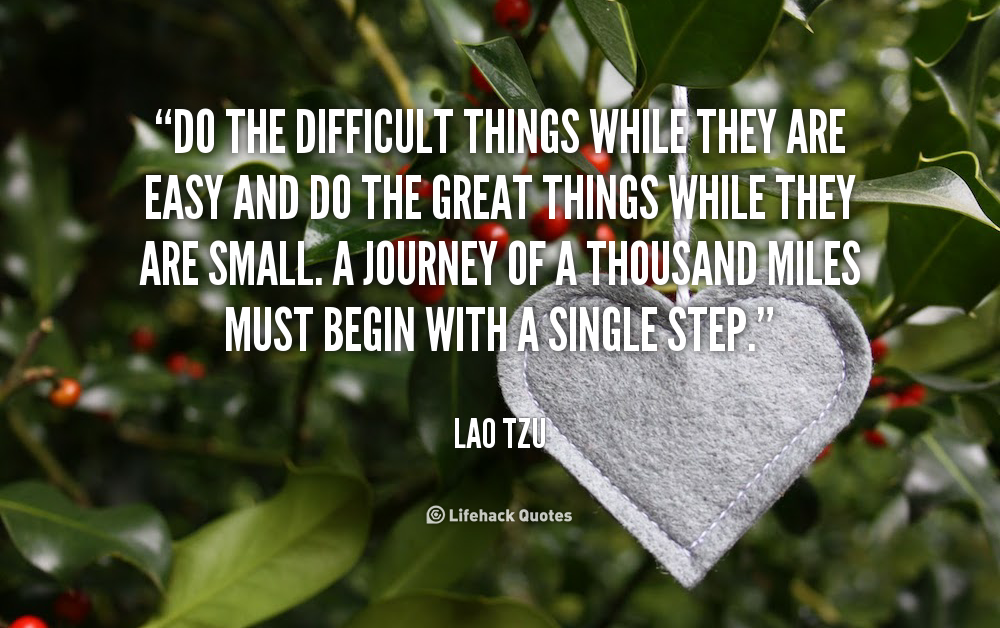 Do the difficult things while they are easy and do the great things while they are small. A journey of a thousand miles must begin with a single step.