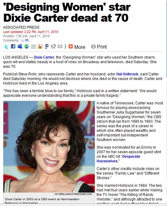 Dixie Carter — American Actor born on May 25, 1939, died on April 10, 2010