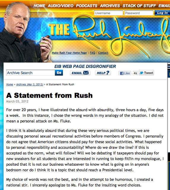 Rush Hudson Limbaugh III is an American entertainer, radio talk show host, writer, and conservative political commentator. Since he was 16, Limbaugh has worked a series of disc jockey jobs. His talk show began in 1984 at Sacramento, California radio station KFBK, featuring his ongoing format of political commentary and listener calls. In 1988, Limbaugh began broadcasting his show nationally from radio station WABC in New York City, and now broadcasts from WOR. He currently lives in Palm Beach, Florida, where he broadcasts The Rush Limbaugh Show, the highest-rated talk-radio program in the United States.Talkers Magazine in 2012 lists Limbaugh as the most-listened-to talk show host with a weekly audience of 15 million... (wikipedia)