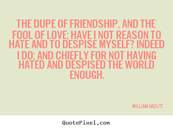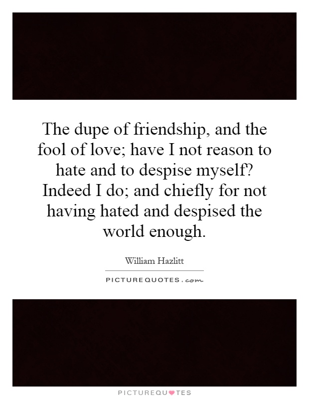 The dupe of friendship, and the fool of love; have I not reason to hate and to despise myself? Indeed I do; and chiefly for not having hated and despised the world enough.