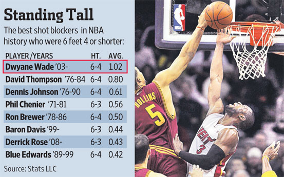 Dwyane Tyrone Wade, Jr. is an American professional basketball player for the Miami Heat of the National Basketball Association. He has established himself as one of the most well-known and popular players in the league. Wade had the top selling jersey in the NBA for nearly two years, leading the league in jersey sales from the 2005 NBA Playoffs, until the midpoint of the 2006–07 season. His first name is pronounced the same as the more common spellings "Dwayne" and "Duane"... (wikipedia)