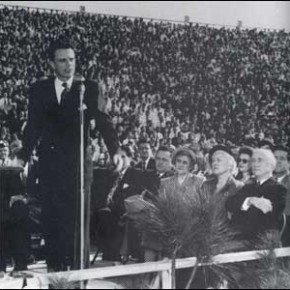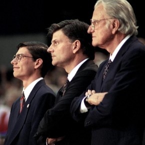 William Franklin "Billy" Graham Jr., KBE is an American evangelical Christian evangelist, ordained as a Southern Baptist minister, who rose to celebrity status in 1949 reaching a core constituency of middle-class, moderately conservative Protestants. He held large indoor and outdoor rallies; sermons were broadcast on radio and television, some still being re-broadcast today... (wikipedia)