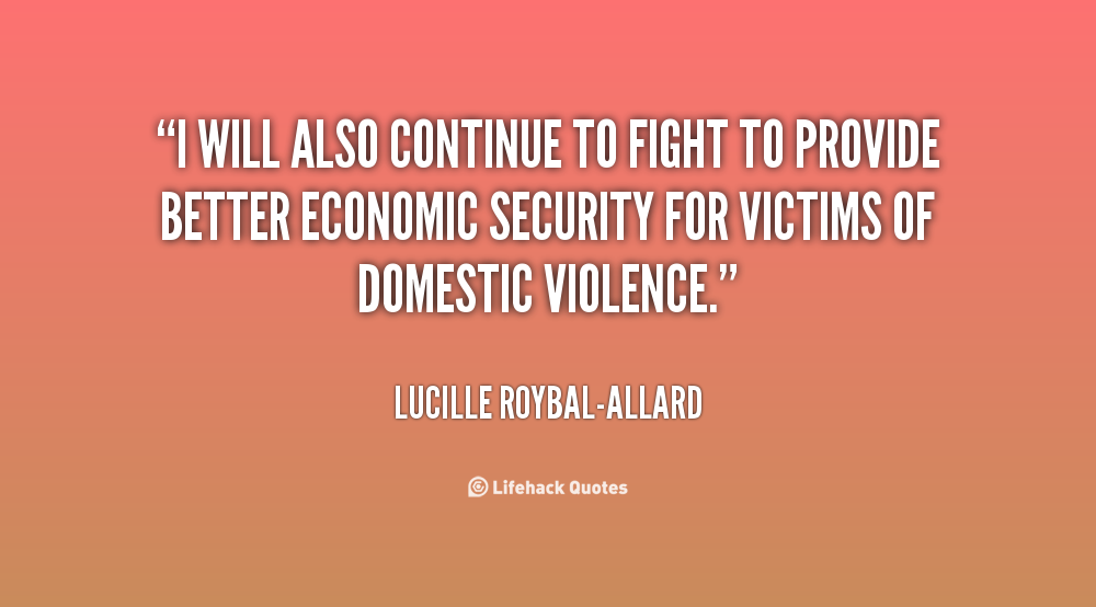 I will also continue to fight to provide better economic security for victims of domestic violence.