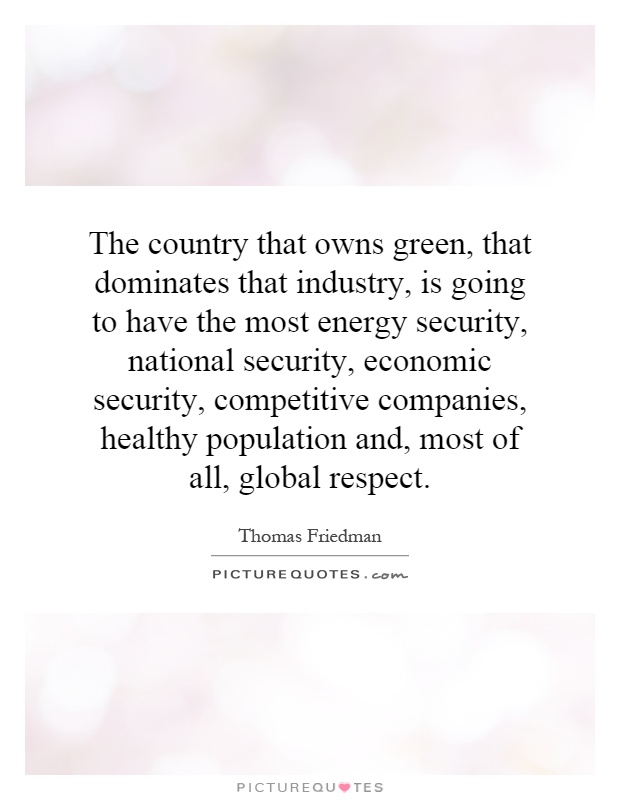 The country that owns green, that dominates that industry, is going to have the most energy security, national security, economic security, competitive companies, healthy population and, most of all, global respect.