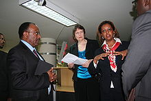 Eleni Zaude Gabre-Madhin is an Ethiopian economist and a former Chief Executive Officer of the Ethiopia Commodity Exchange. She has had many years of experience working on agricultural markets – particularly in Sub-Saharan Africa – and has held senior positions in the World Bank, the International Food Policy Research Institute, and United Nations. She has a PhD in Applied Economics from Stanford University, and bachelor's and master's degrees in economics from Cornell University and Michigan State University respectively. Eleni was selected as "Ethiopian Person of the Year" for the 2002 ET calendar year by the Ethiopian newspaper Jimma Times... (wikipedia)