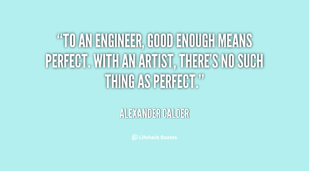 To an engineer, good enough means perfect. With an artist, there's no such thing as perfect.