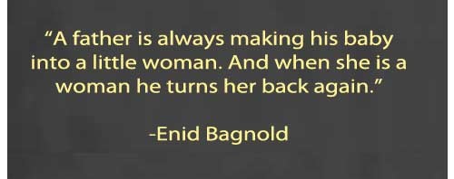 A father is always making his baby into a little woman. And when she is a woman he turns her back again.