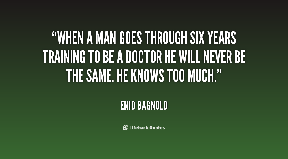 When a man goes through six years training to be a doctor he will never be the same. He knows too much.