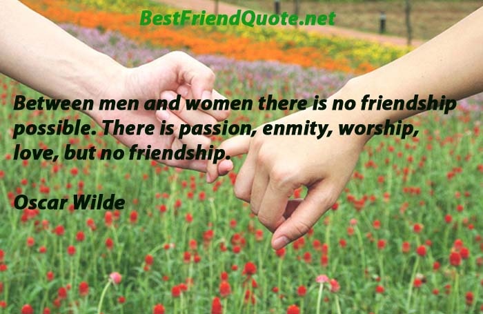 Between men and women there is no friendship possible. There is passion, enmity, worship, love, but no friendship.