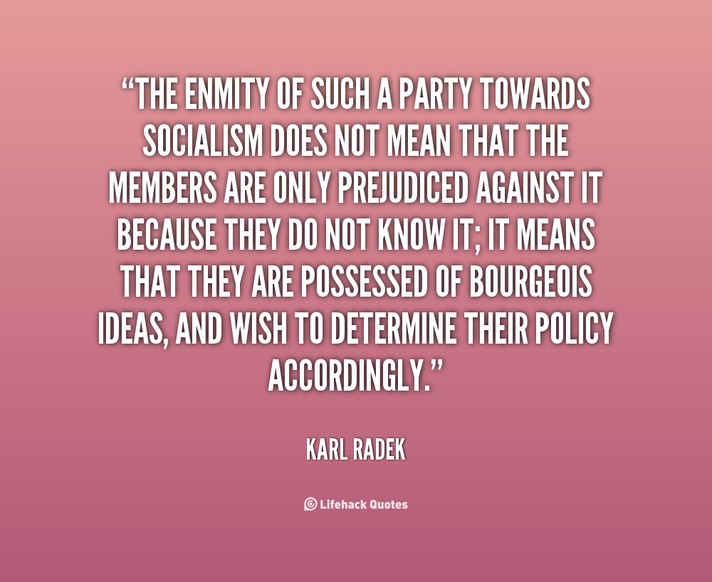 The enmity of such a party towards Socialism does not mean that the members are only prejudiced against it because they do not know it; it means that they are possessed of bourgeois ideas, and wish to determine their policy accordingly.