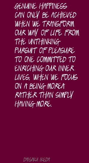 Genuine happiness can only be achieved when we transform our way of life from the unthinking pursuit of pleasure to one committed to enriching our inner lives, when we focus on 'being more' rather than simply having more.