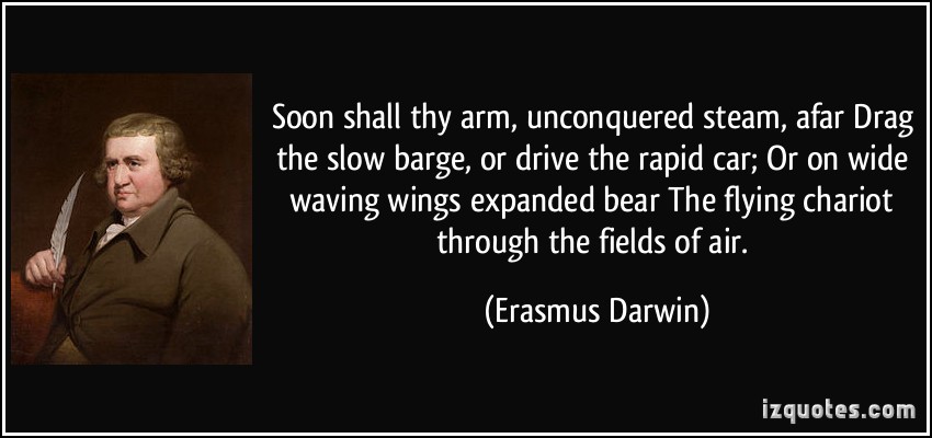 Erasmus Darwin was an English physician. One of the key thinkers of the Midlands Enlightenment, he was also a natural philosopher, physiologist, slave-trade abolitionist, inventor and poet. His poems included much natural history, including a statement of evolution and the relatedness of all forms of life. He was a member of the Darwin–Wedgwood family, which includes his grandsons Charles Darwin and Francis Galton. Darwin was also a founding member of the Lunar Society of Birmingham, a discussion group of pioneering industrialists and natural philosophers. He turned down George III's invitation to be a physician to the King... (wikipedia)