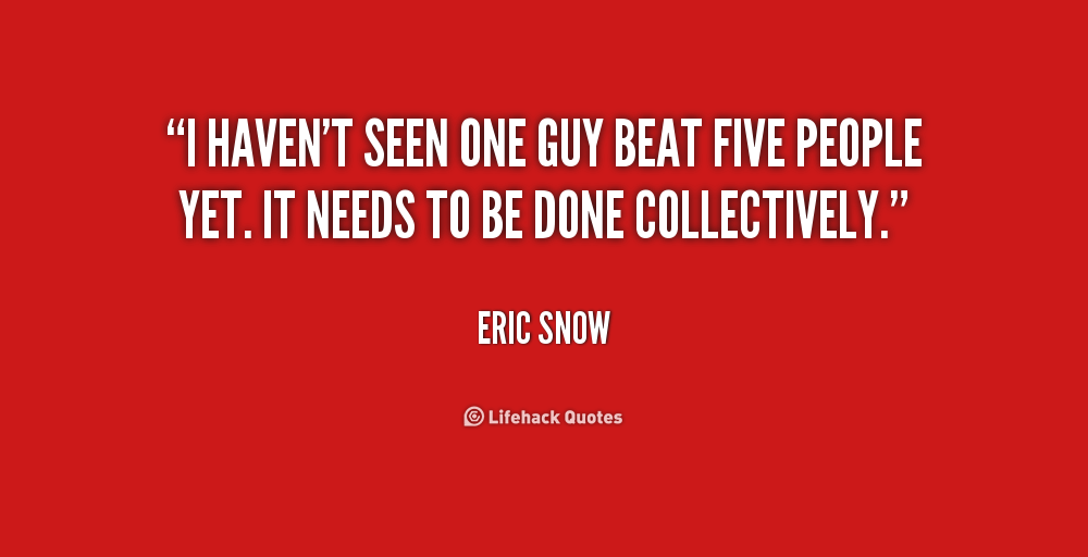 I haven't seen one guy beat five people yet. It needs to be done collectively.