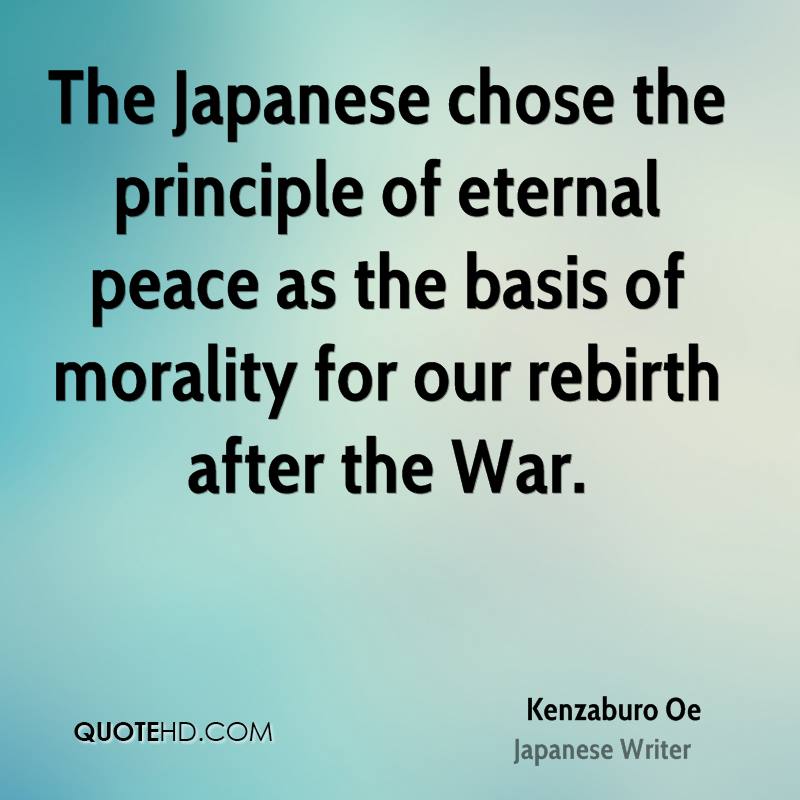 The Japanese chose the principle of eternal peace as the basis of morality for our rebirth after the War.