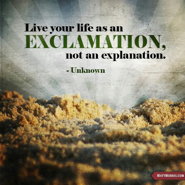 We only live once, but once is enough if we do it right. Live your life with class, dignity, and style so that an exclamation, rather than a question mark signifies it!