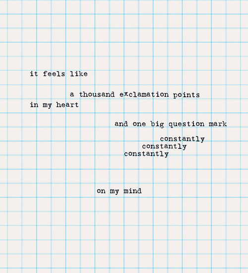 People complain about my exclamation points, but I honestly think that's the way people think. I don't think people think in essays; it's one exclamation point to another.